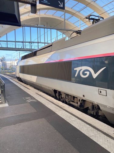 写真左からランス(Reims)の街並み①②/TGV(高速鉄道)/ノートルダム大聖堂