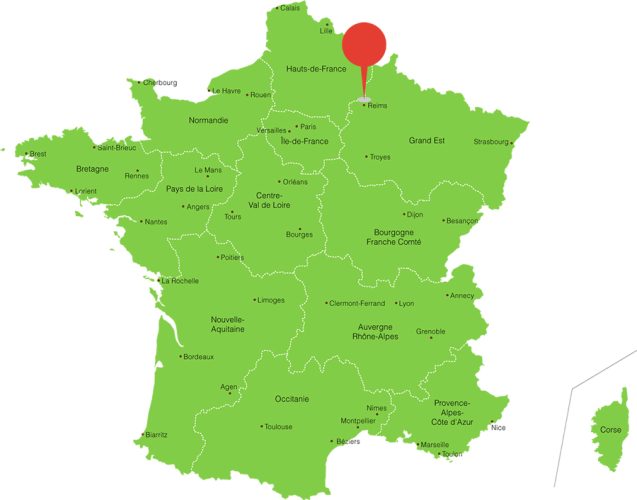 フランス北東部、パリの東約130kmに位置する都市で、TGV(高速鉄道)を使えばパリから約45分でアクセス可能です。フランス・シャンパーニュ地方の中心都市としても知られ、歴史・文化・観光・食のすべてが豊かな街です。 |