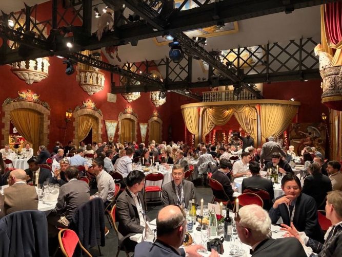 特に印象的だったのが、ネットワーキングイベントの一環として開催された「GALA EVENT」です。GALA EVENTは、イタリア・ヴェネツィアで毎年開催される伝統的な祭典「Venice Carnival(ヴェネツィア・カーニバル)」をテーマにしたイベントで、参加者はマスクや羽根、ゴールドやレースをあしらった華やかな装飾を身に着けて参加する、交流会を兼ねたディナー形式で行われました。会場に足を踏み入れた当初は、その雰囲気と空間演出に圧倒されましたが、各国の研究機関や企業関係者と、展示ブースやセッションとは異なる環境で率直な意見交換ができたことは、大変有意義な機会となりました。