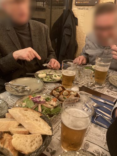 食事は現地のビストロでステーキやパテ、エスカルゴを楽しんだり、ピッツェリアでピッツァを味わったりしましたが、どれも本当に美味しかったです。また、出展支援に駆け付けてくれた現地の販売店とも食事を共にでき、普段はオンラインでやり取りしていることもあって、いつも以上に濃密なコミュニケーションが取れ、楽しい時間を過ごすことができました。