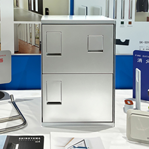 ■神栄ホームクリエイト株式会社は物干金物、室名札、郵便受箱、宅配ボックス、消火器ボックス、ドアハンドル、換気口部品等の建築金物メーカーです。